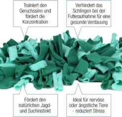 - Langdurig plezier: dit snuffeltapijt bootst het zoeken naar voedsel op gras en velden na. Verberg de lekkernijen of het kleine hondenspeelgoed in het snuffeltapijt. Kalmeert uitgedraaide honden, langdurig plezier van het snuffelen.