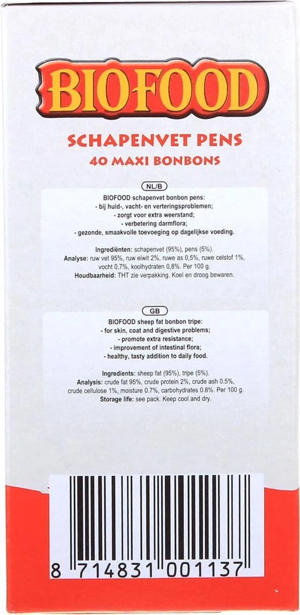 De BIOFOOD schapenvet bonbon bestanddelen zorgen voor: