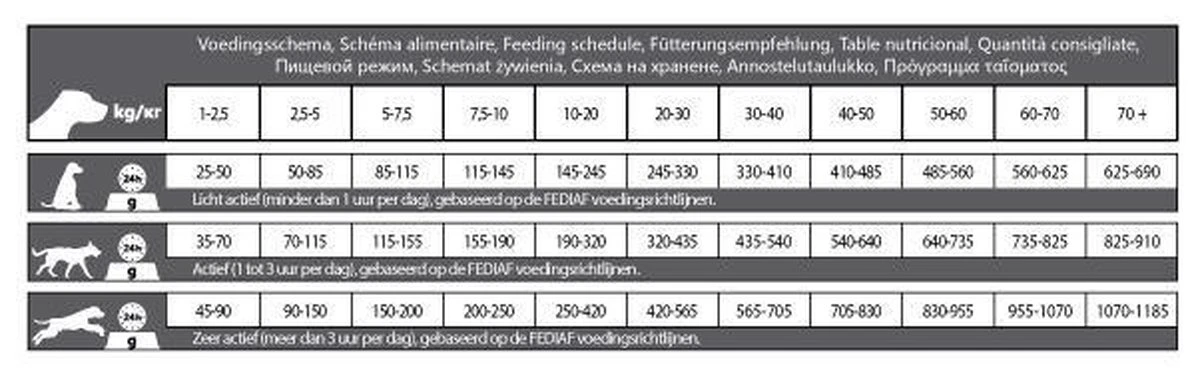 Rijst, maïs, gedroogd lamsvlees, gerst, tarwe, bietenpulp, rundvet, gist, lamsvleesextract, plantaardige oliën, lecithine, vitamines, sporenelementen, mineralen, vobra-mix (tocopherol).
