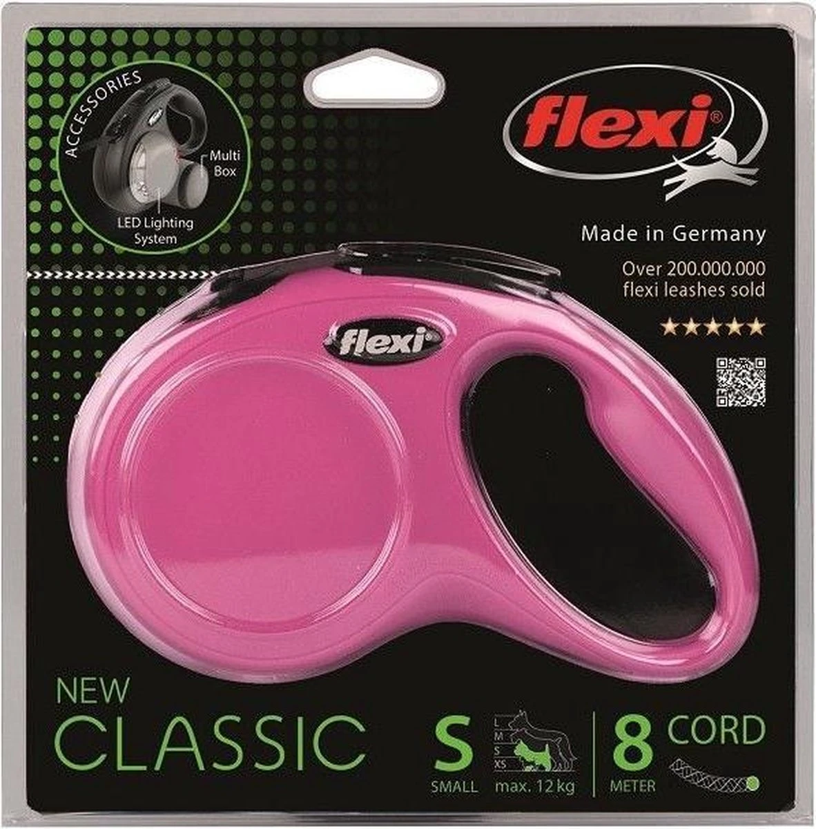 Bij Flexi kan je kiezen tussen lijnen met een koord en lijnen met tape. Het is een persoonlijke voorkeur welke variant je het fijnst vindt. In principe zijn beide soorten even sterk en veilig om te gebruiken. De New Classic Cord bevat een koord.