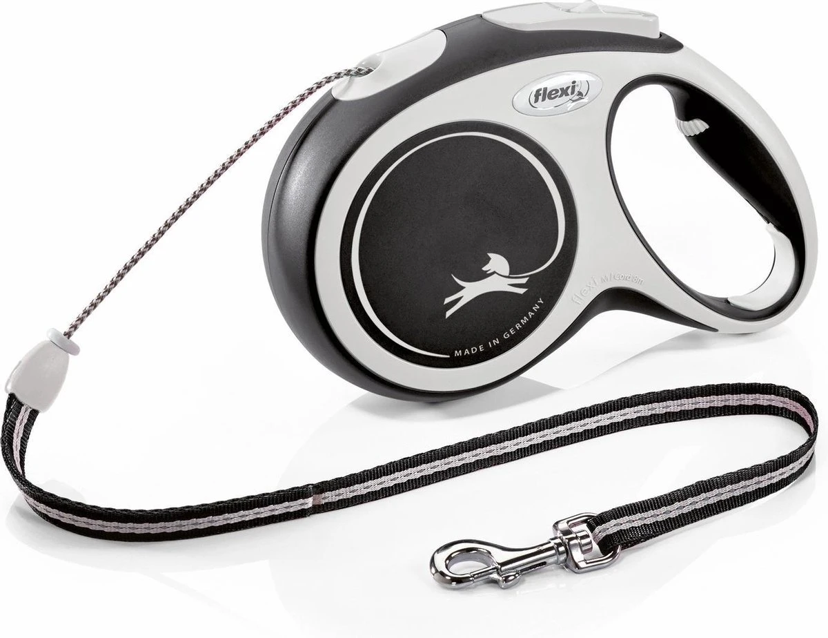 Bij Flexi kan je kiezen tussen lijnen met een koord en lijnen met tape. Het is een persoonlijke voorkeur welke variant je het fijnst vindt. In principe zijn beide soorten even sterk en veilig om te gebruiken. De New Comfort Cord bevat een koord.