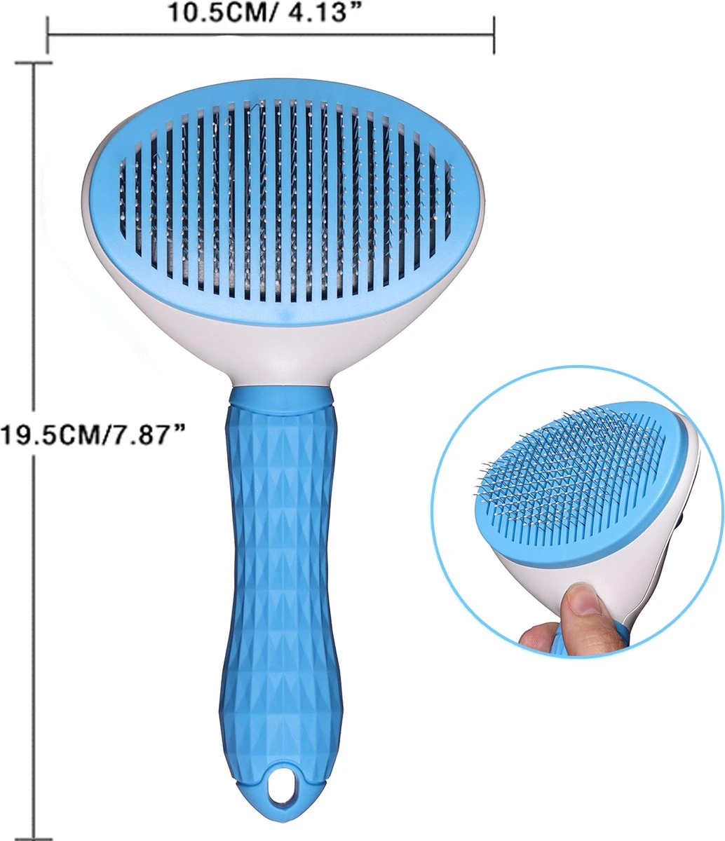 - Intrekbare borstelharen: de zelfreinigende slickerborstel is enorm gemakkelijk te gebruiken en schoon te maken; nadat u op de knop hebt gedrukt en de borstelharen hebt losgemaakt, kunt u beginnen met het borstelen van uw huisdier; na het borstelen drukt u nogmaals op de knop om de borstelharen in te trekken; de vacht kunt u gemakkelijk wegvegen, zodat u geen plukken vacht meer uit uw huisdierborstel hoeft te peuteren.
