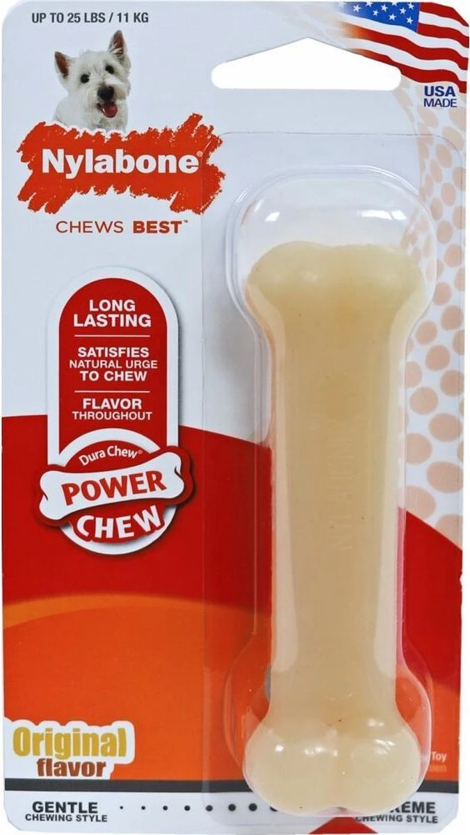 Het Nylabone kauwbot is vervaardigd uit duurzaam hoogwaardig nylon. Nylabones zijn goed gekeurd door dierenartsen om aan de kauwdrift van uw hond te voldoen.