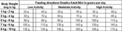 Ons advies in de voedingstabel is een richtlijn. Andere factoren zoals o.a. ras en geslacht spelen ook een rol bij de dagelijkse voedingsbehoefte van je hond. Zorg er ook voor dat je hond altijd een bakje vers drinkwater heeft.