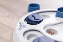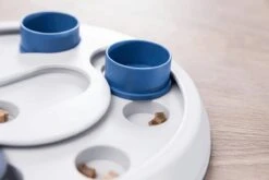 – Met schuifdeksels en kommetjes waaronder de hond naar zijn beloning moet zoeken